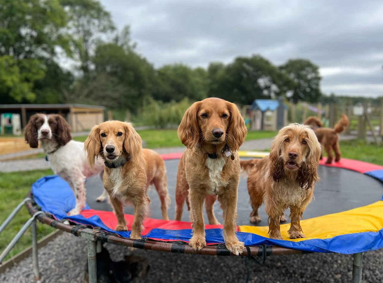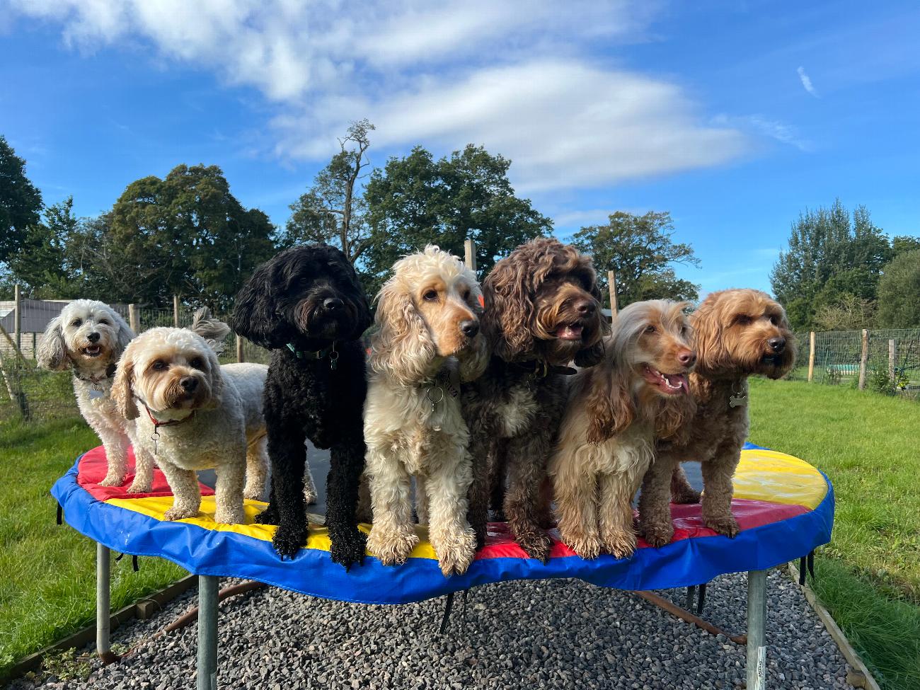 It's the perfect setting for doggy daycare, dog walking, puppy training & socialisation in Sevenoaks. Whether your pup is into chasing balls or bubbles, exploring our scent areas, play houses, huge sandpits, hammock swings, podiums, splashing about or jumping on the trampolines, there's something for everyone.